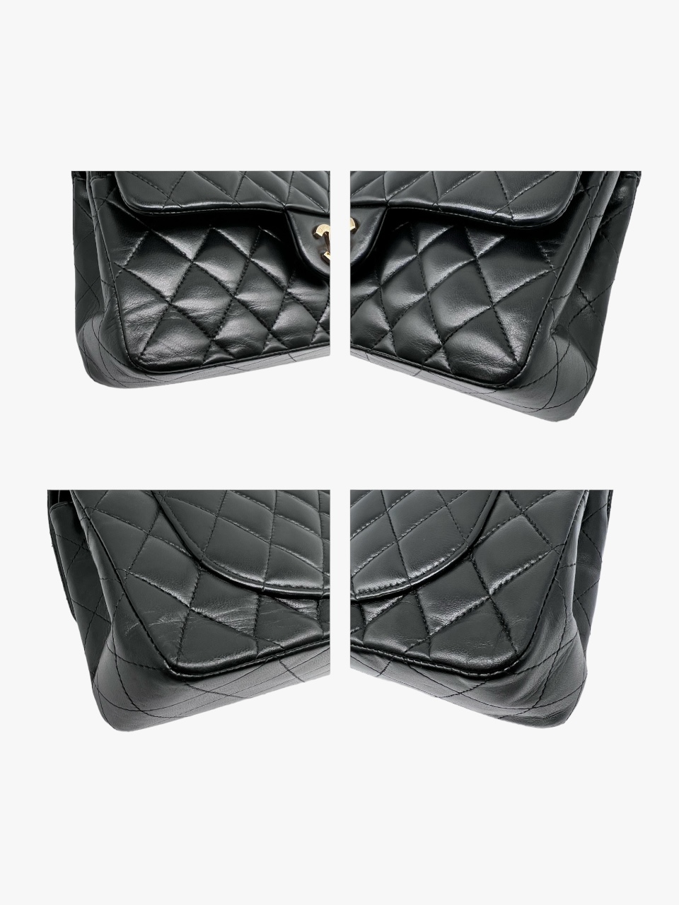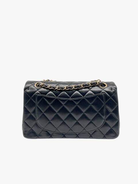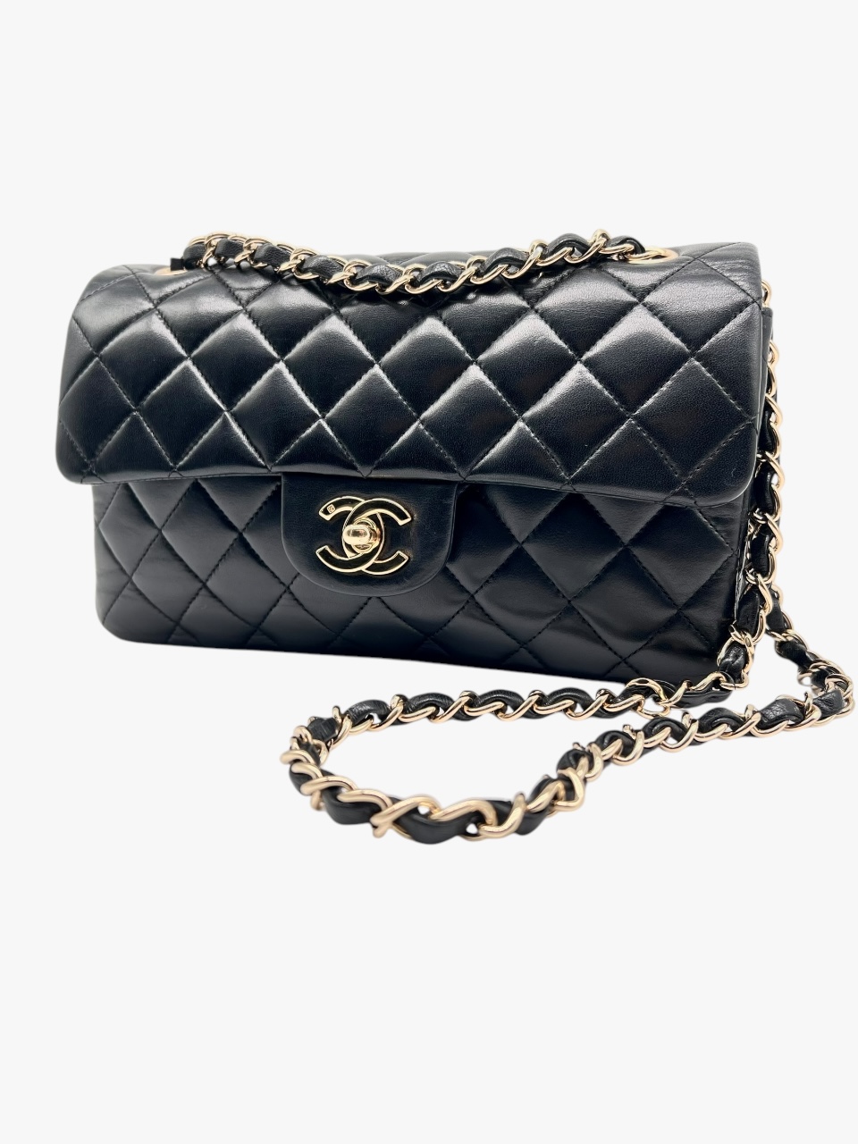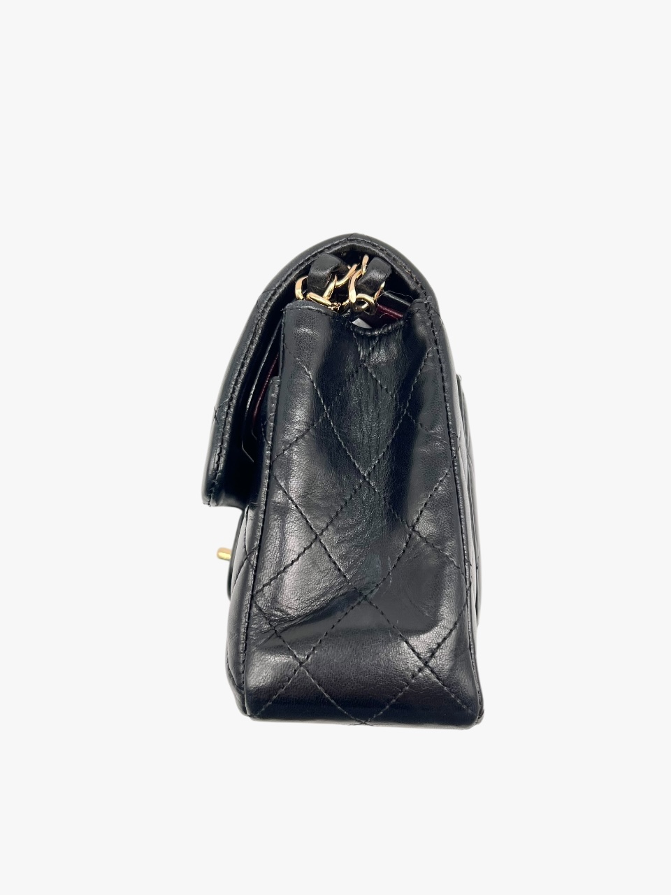 Chanel classica piccola in pelle di agnello liscia, trapuntata, colore nero, hardware e metalleria gold.