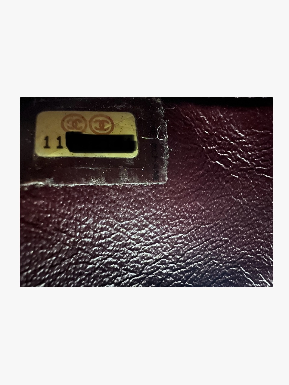 Anno 2008, misure 23 x 14,5 x 6 cm, tracolla in catena intrecciata con pelle , double flap, interno in pelle colore borgogna, chiusura a torsione “Mademoiselle”.