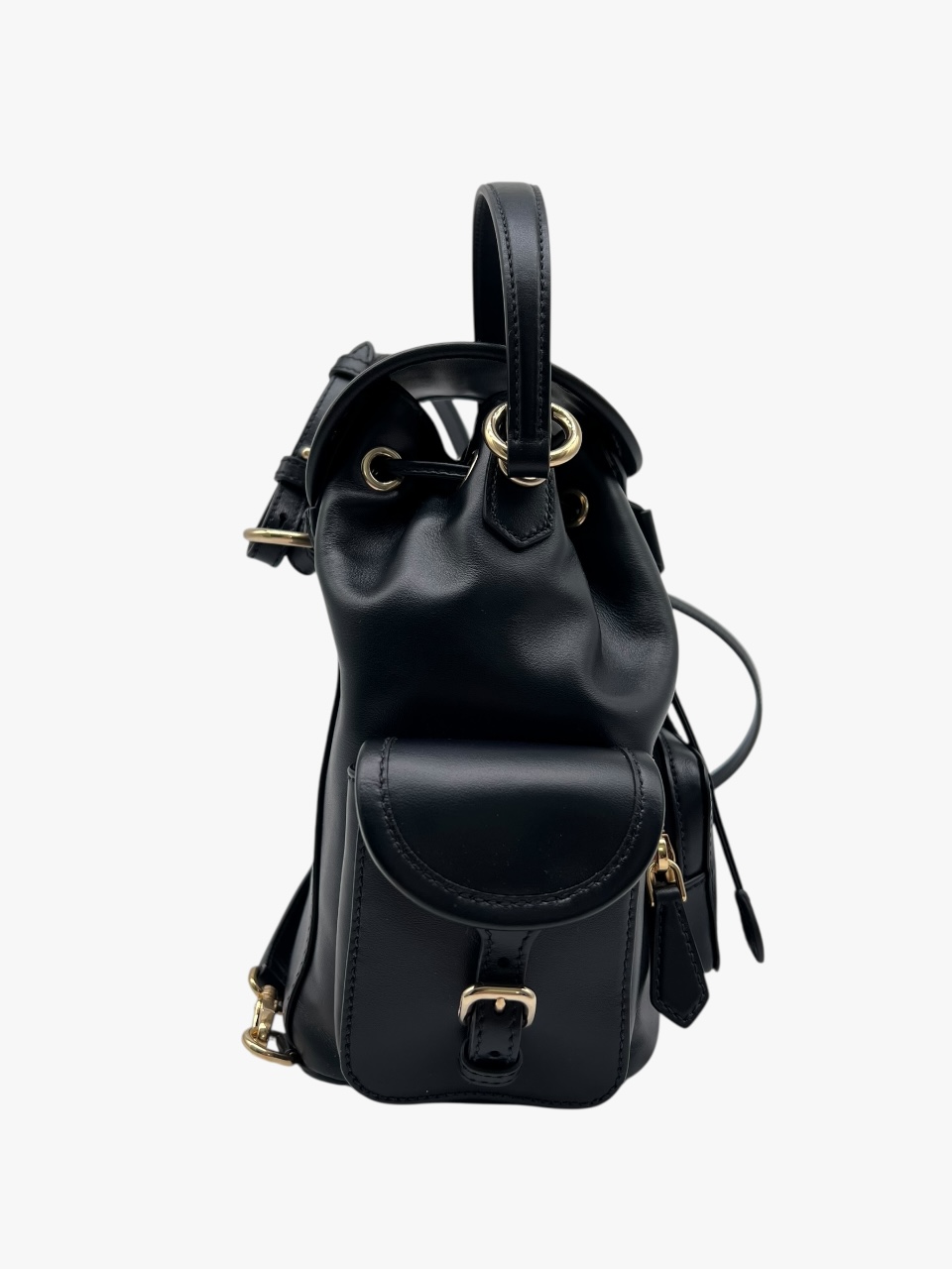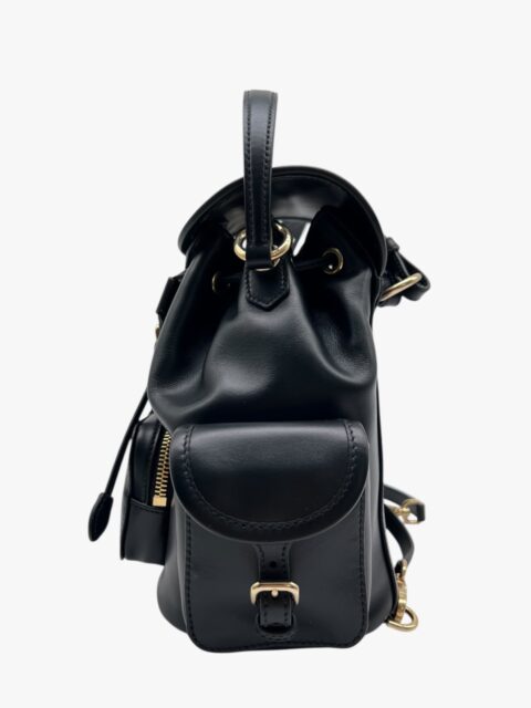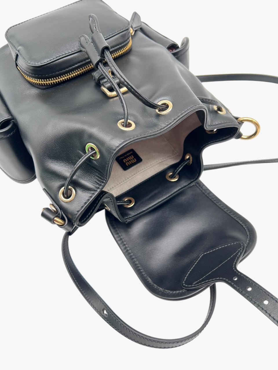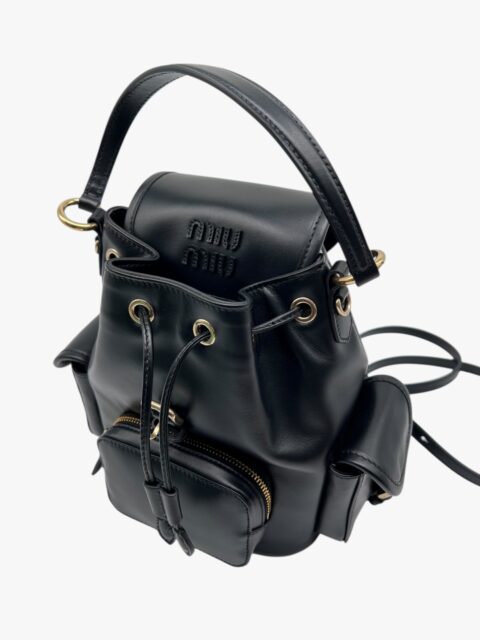 Ispirato al fascino del guardaroba scolastico, questo zaino Miu Miu unisce artigianalità e spirito contemporaneo con un’eleganza fresca e disinvolta. Realizzato in pelle di vitello di alta qualità, si distingue per il suo design compatto e funzionale, arricchito da finiture dorate e da dettagli iconici che riflettono lo stile raffinato e giocoso della Maison.