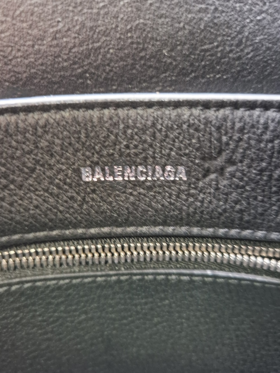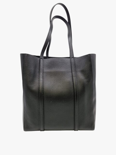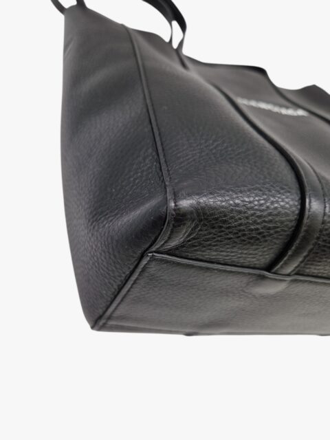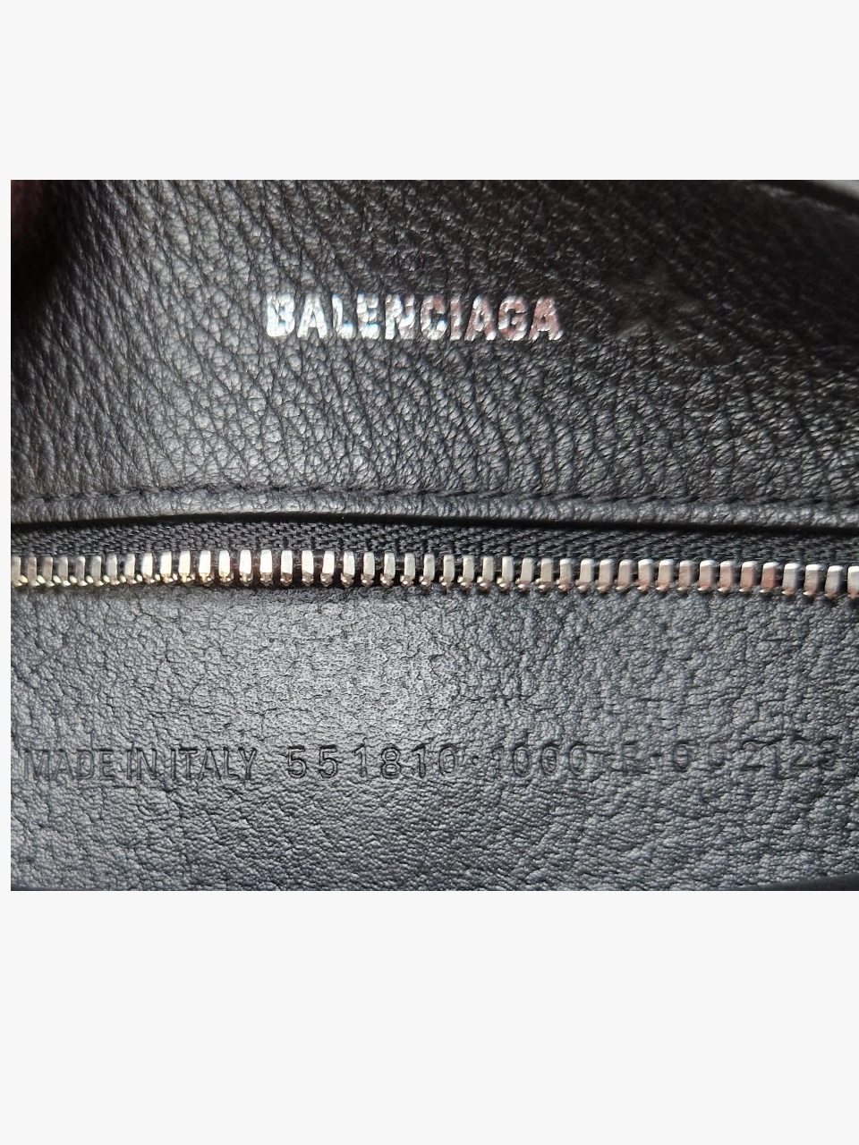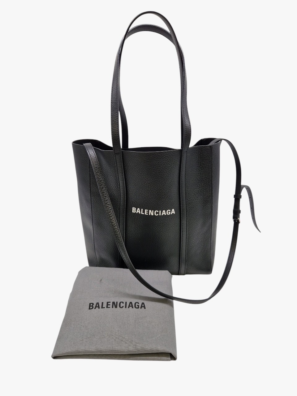 Borsa Tote Everyday XS in pelle liscia di vitello nero Dotata do due manici sottili e una tracolla amovibile e regolabile (altezza luce max 60 cm min 48 cm). Logo Balenciaga centrale bianco in leggero rilievo Metalleria Argento.
