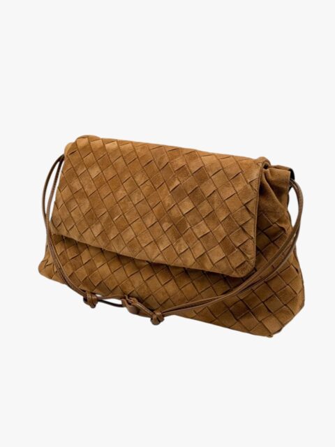 Pochette in pelle Intrecciata con patta e chiusura a coulisse, dotata di passante per il trasporto a spalla. L’interno presenta uno scomparto principale in nylon La patta e il laterali interni presentano una chiusura magnetica Realizzata in pelle di vitello. Misure 33 x 19 x 8 cm. Tracolla luce max 45 cm, min 24 cm. Dotata di dustbag. Passante in pelle per il trasporto a spalla, Fodera: Nylon, Colore: Cammello.