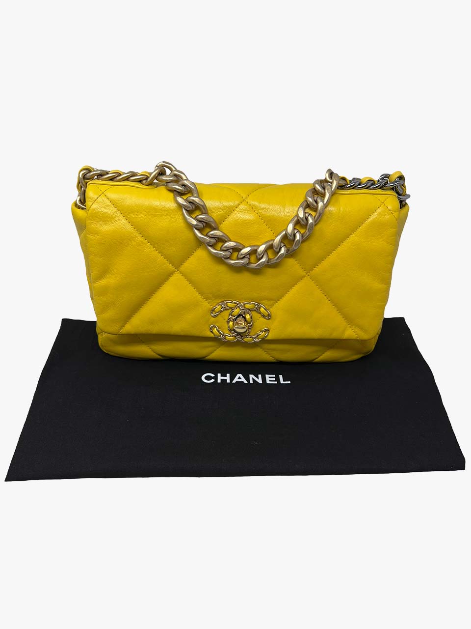 Chanel 19 in pelle di agnello, colore giallo limone.