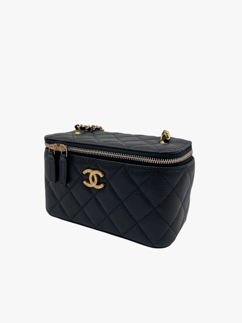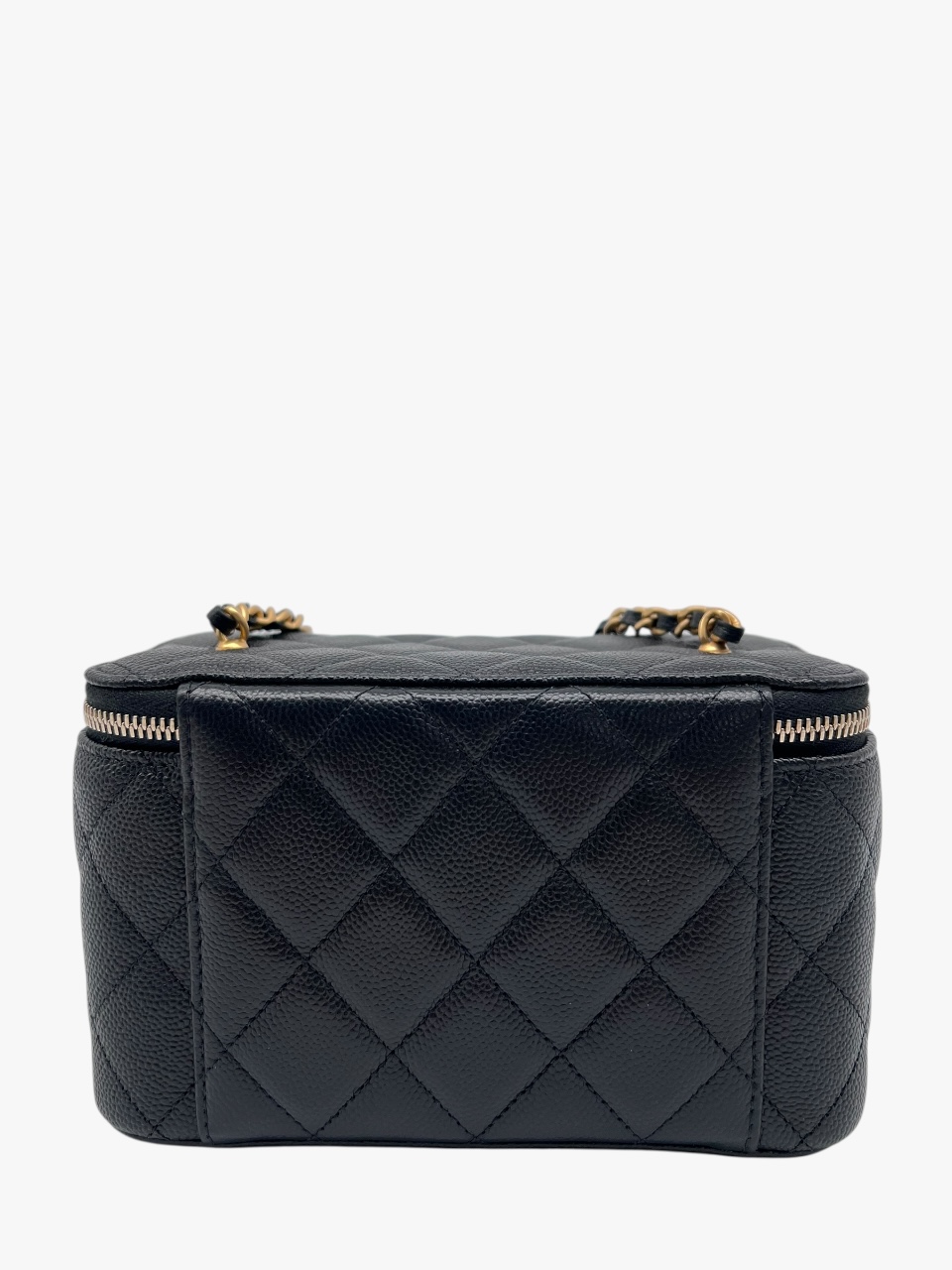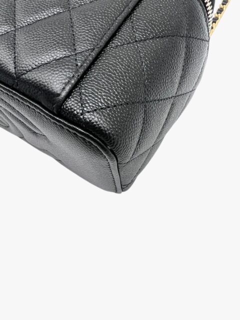 Esclusiva e femminile, questa mini vanity Chanel è realizzata in pregiata pelle caviar – riconosciuta per la sua resistenza e texture distintiva – ed è impreziosita da una tracolla con perle, dettaglio raffinato che richiama l’iconica eleganza della maison.