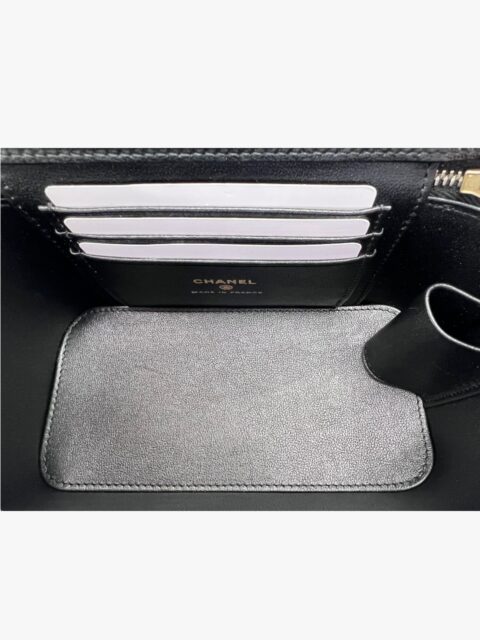 La silhouette compatta ma strutturata rende questa borsa Chanel ideale per serate speciali, eventi eleganti o per aggiungere un tocco di classe a un outfit minimal. L’interno è sorprendentemente funzionale, perfetto per custodire l’essenziale con stile.