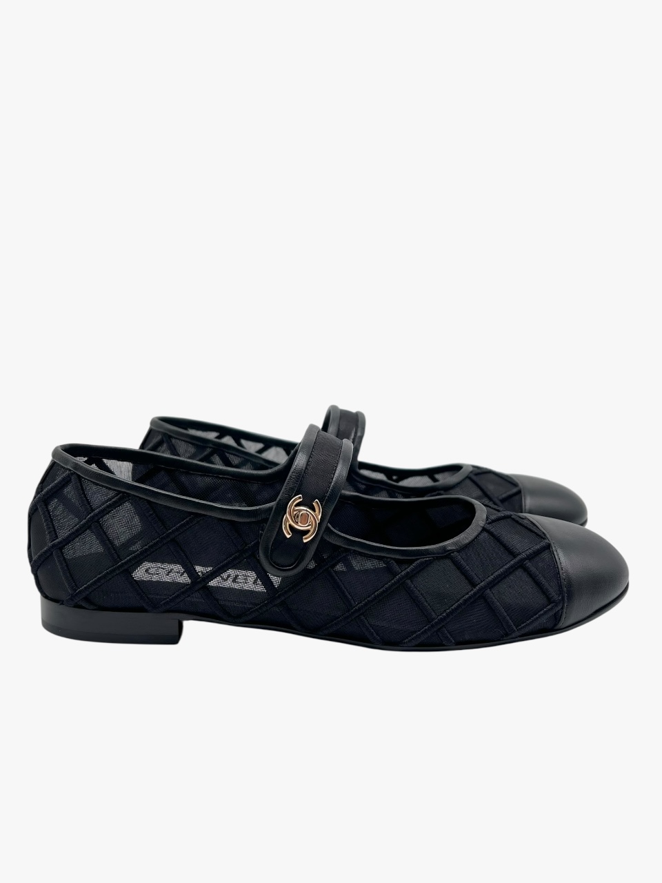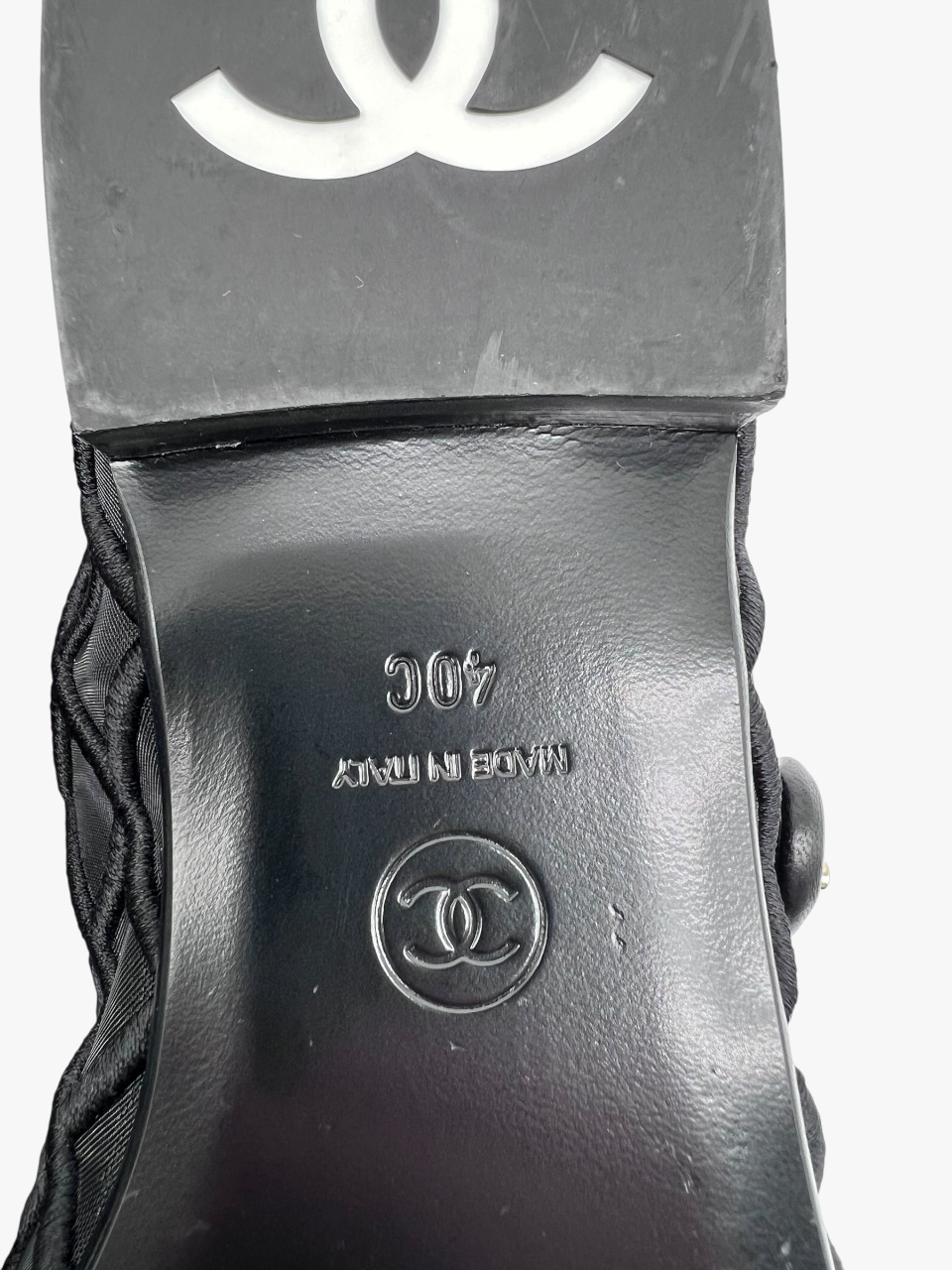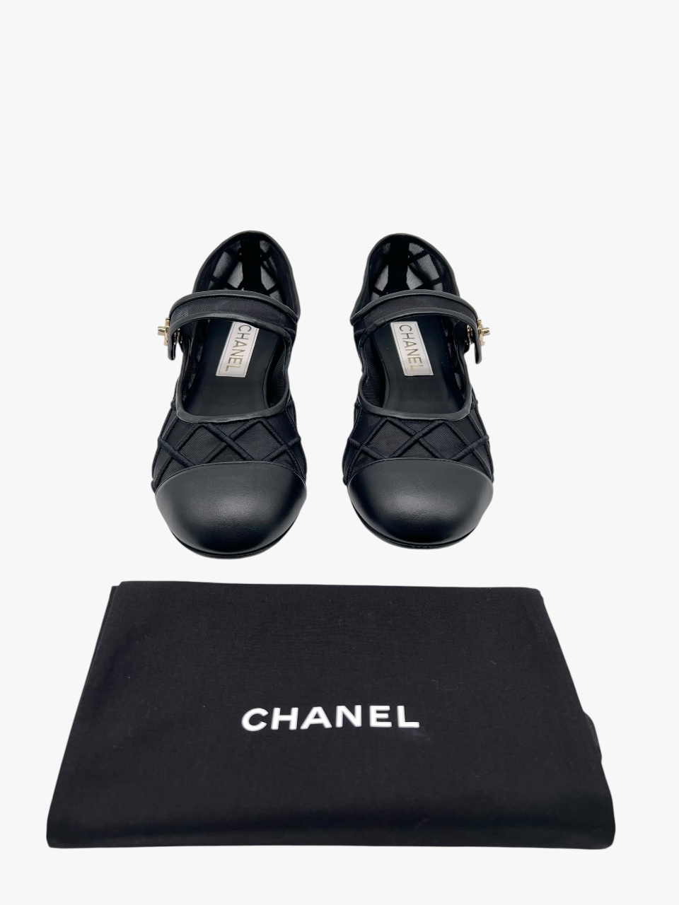 Scarpa Chanel modello Mary Jane, in tessuto tessuto tecnico semi-trasparente, con impunture matelassé. La punta e i bordi della scarpa sono in pelle nera liscia. Il tocco di classe è dato dalla chiusura CC a torsione, in metallo light gold, applicata sulla linguetta superiore. Misura 40, tacco basso 1.5 cm, soletta interna 26 cm. La scarpa si presenta in buone condizioni, nonostante siano state utilizzate più volte. Presentano segni di usura sulla suola come si evince da foto. Corredate delle Dustbag.