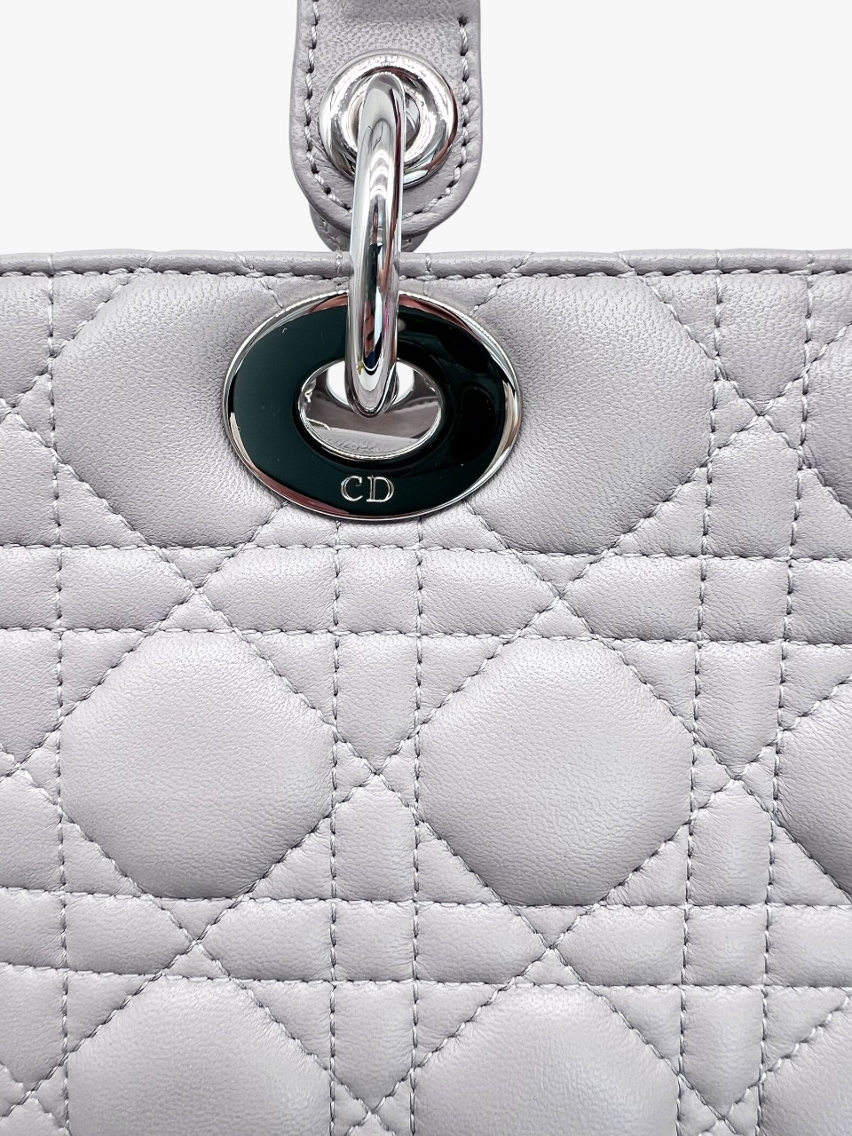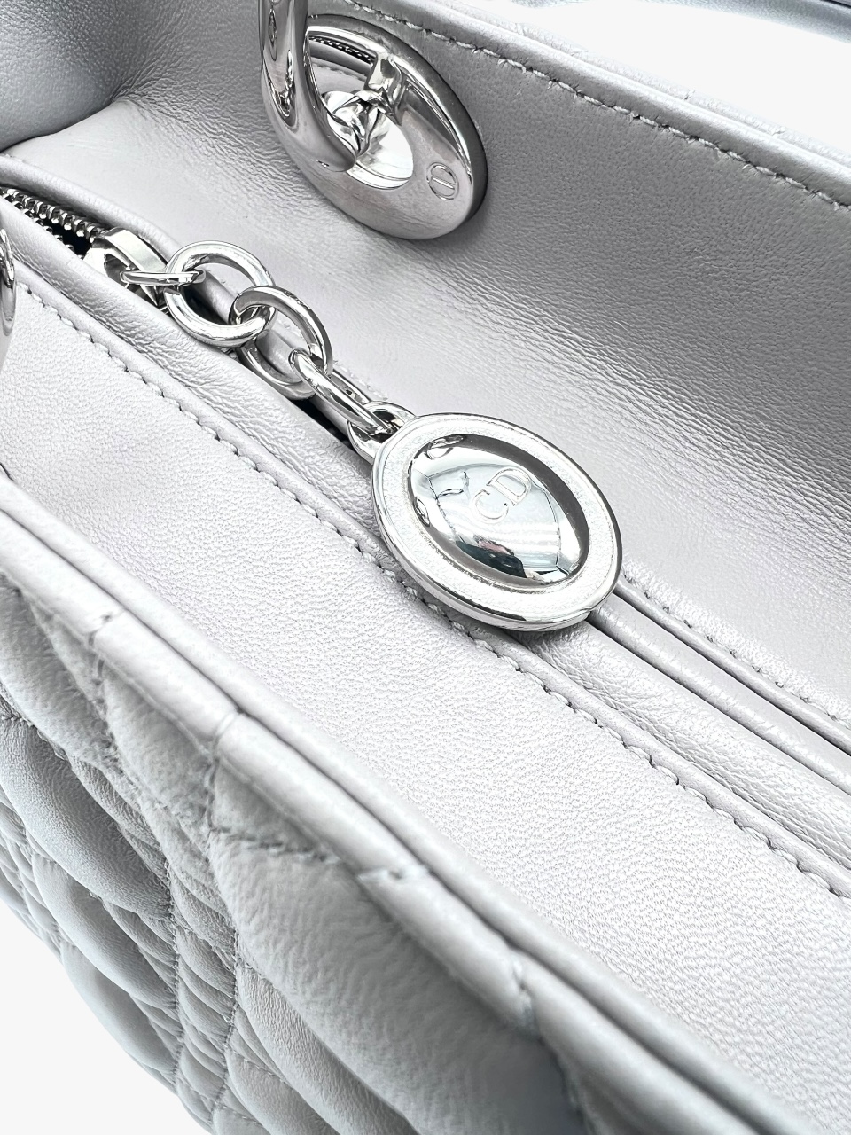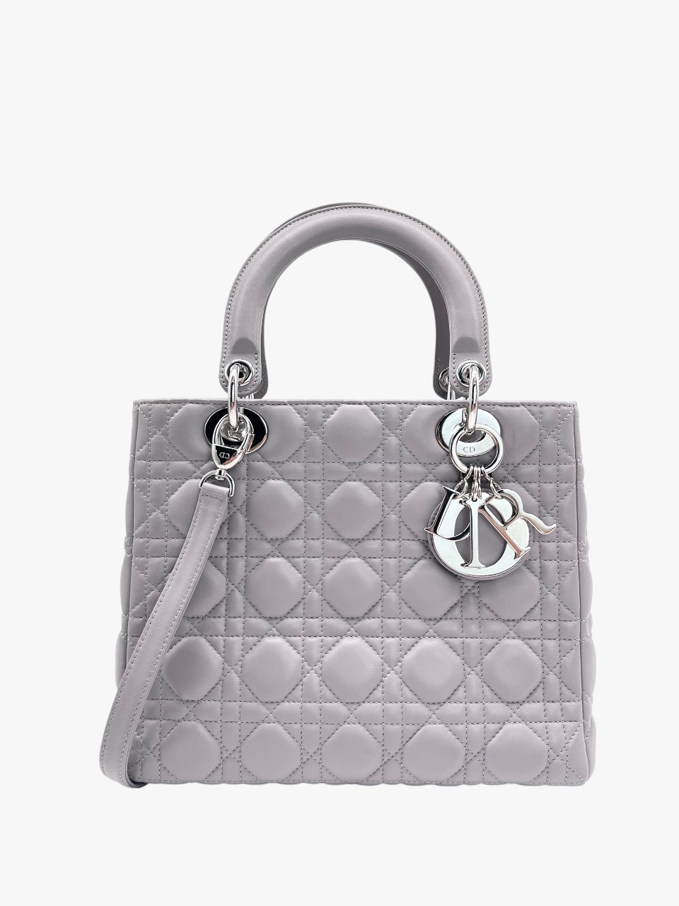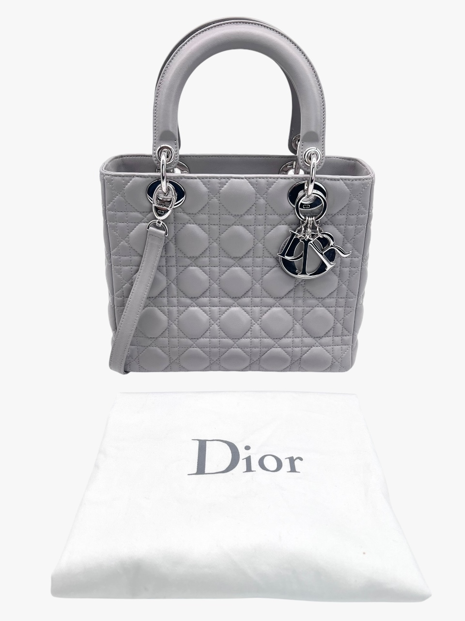 La borsa Lady Dior è la quintessenza dello stile raffinato della Maison. Elegante e ricercata con il suo fascino intramontabile, è realizzata in pelle di vitello liscia, nera con cuciture Cannage, che creano l’iconica texture trapuntata. È impreziosita inoltre dai ciondoli D.I.O.R. in metallo dorato, che le donano un fascino elegante. Può essere portata a mano o crossbody, grazie alla tracolla slim. Anno 2010, Misure 24 x 20 x 11 cm, corredata di Dustbag. Si presenta in buone condizioni.