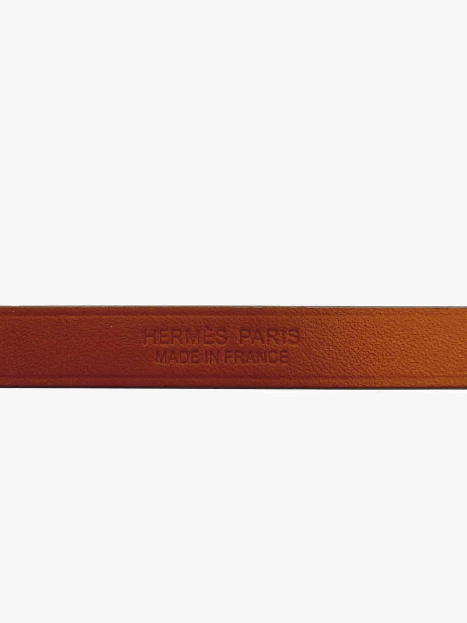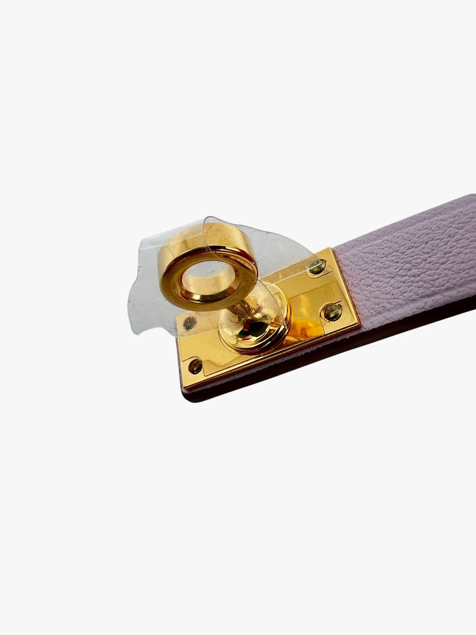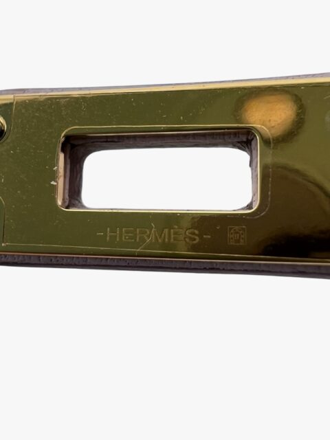 Dalla creazione della borsa Kelly, negli anni ’30, il fermaglio Touret è diventato un simbolo della Maison. Ne fanno sfoggio, bracciali intramontabili come: Il Bracciale doppio giro in vitello Swift Mini Kelly Double Tour. Con interno in vitello Zermatt, ornato dall’iconico fermaglio Kelly in versione mini. Anno 2024. Misura T3: da 15,5 cm a 16,5 cm, larghezza 1 cm. Si presenta nuovo, mai utilizzato e corredato della dustbag e della scatola.