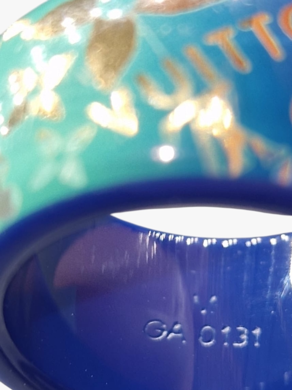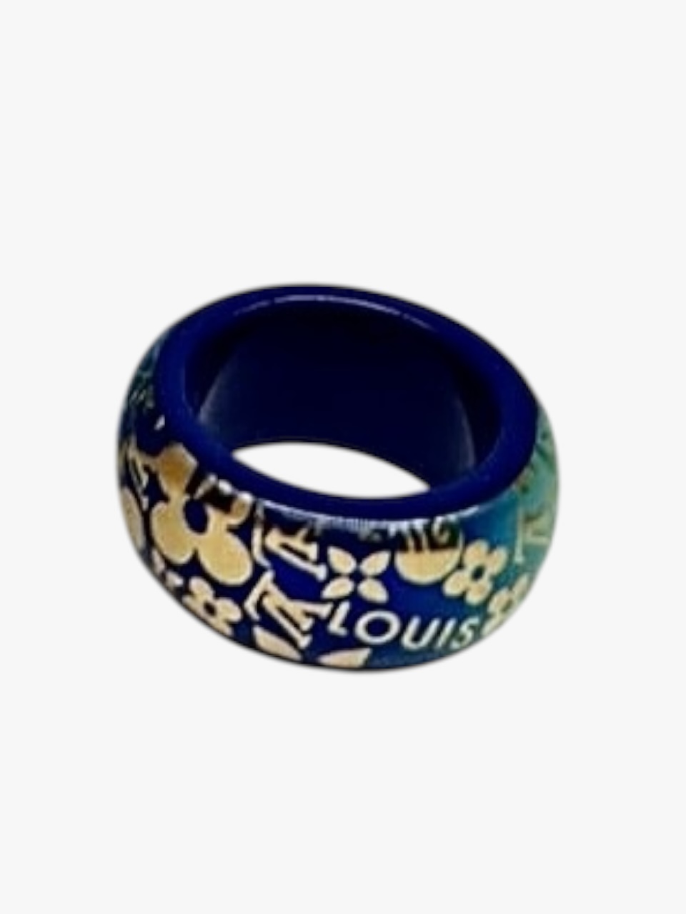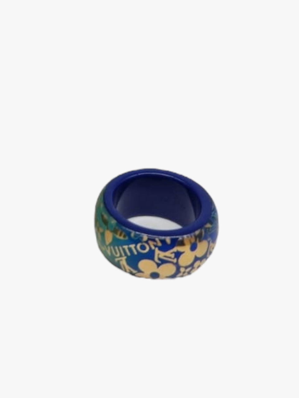 Anello con monogramma Burg Tropical Blu royal con sfumatare verde acqua/color oro Anello chunky Motivo con monogramma Misura M Anno 2011.