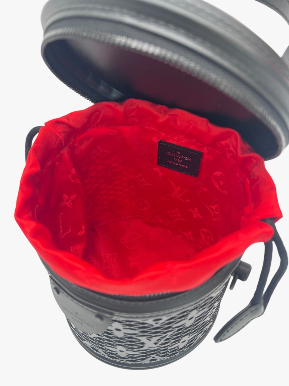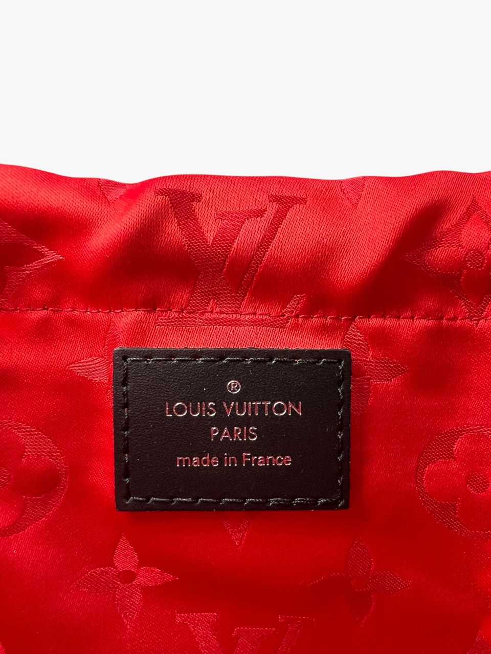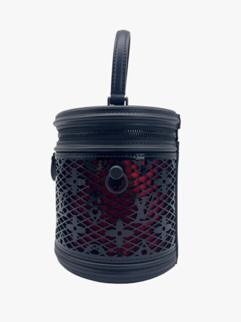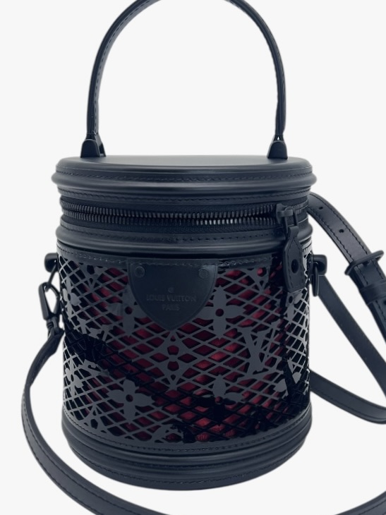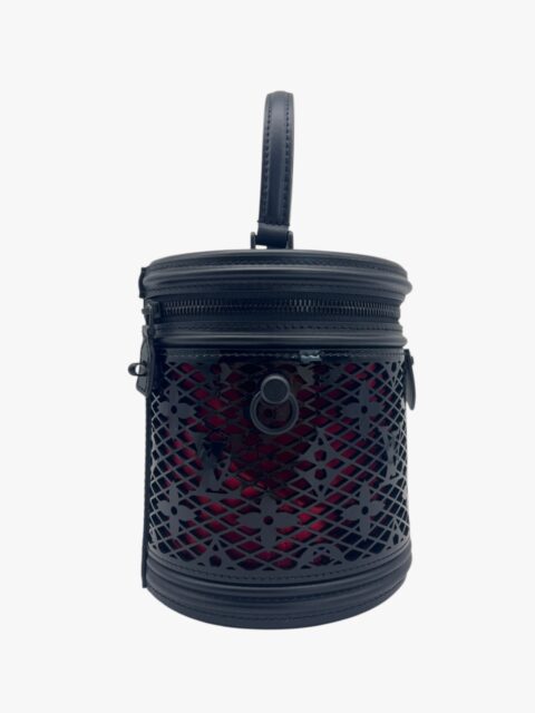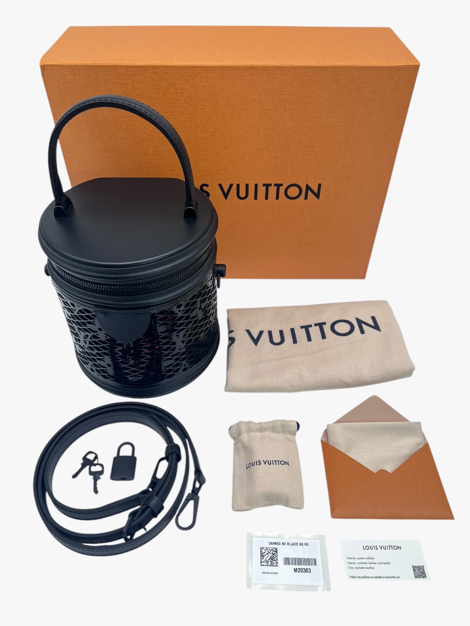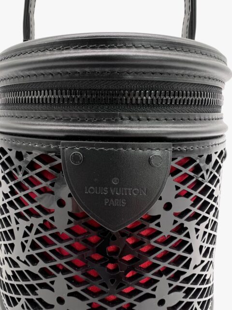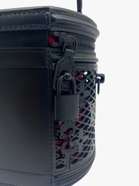 La borsa Cannes si ispira alle iconiche forme del beauty case LV Cannes. Questo modello in particolare fa parte di una Capsule del 2022 “Ramadan” rivisitata da Ghesquièr. Il corpo centrale della borsa è lavorato con taglio traforato a laser, con rombi e la stampa monogram in colore nero lucido. Le parti metalliche tono su tono satinate. C’è anche un perno alla fine della Zip che permette di bloccarla, grazie ad un lucchetto e chiavi. All’interno possiamo trovare un sacchetto di tessuto rosso, con stampa monogram, lacci in tessuto e linguette in pelle nera. Grazie alla tracolla in pelle amovibile che è anche regolabile ed al manico superiore, la borsa si può indossare in modi differenti. Misure 15 x 14,5 x H 17 cm, corredato di Dustbag, Box e Cartellini. Si presenta in condizioni Nuovo, mai usato.