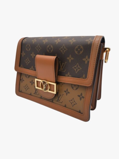 La borsa Dauphine MM è un classico di Louis Vuitton che Nicolas Ghesquière ripropone come it-bag, ispirandosi al modello della Collezione Cruise 2019. L’esclusiva combinazione di tela Monogram e Monogram Reverse, con tracolla a catenella e chiusura magnetica, simboleggia la creatività della Maison nell’adattare la tradizione alla modernità. L’accessorio diventa un must-have per gli estimatori dell’iconico motivo. Misure: 24 x 18 x 10,5 cm. Tela Monogram e Monogram Reverse con finiture in vacchetta Fodera in microfibra. Parti metalliche dorate. Chiusura patta magnetica. Due scomparti interni e una tasca centrale con cerniera. Tasca aperta interna. Perfetta da portare in modi diversi, Tracolla: Amovibile, regolabile Tracolla catena Altezza (Luce): 30cm. Tracolla pelle Altezza (Luce) Max: 51 cm Min 29 cm. Anno 2020. Dotata di dustbag si presenta in buone condizioni.