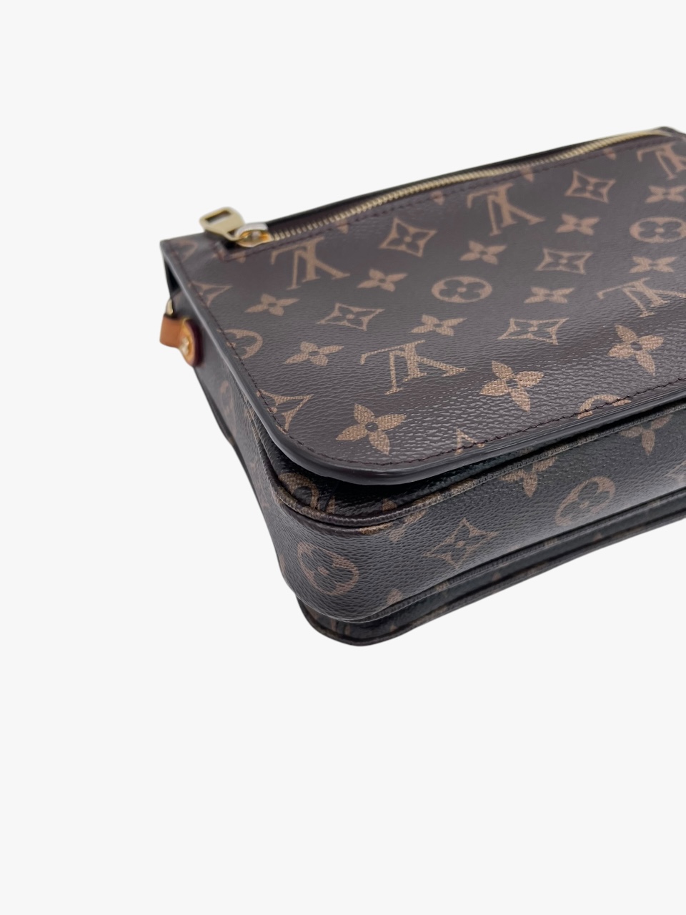 La pochette Métis, ispirata all’intramontabile borsa messenger, è un accessorio audace e di tendenza. L’originale modello compatto, proposto nell’emblematica tela Monogram della Maison, è impreziosito dall’iconico sistema di chiusura a s con elegante finitura dorata lucida. La creazione, versatile e capiente, è completata dal pratico manico superiore e dalla lunga tracolla amovibile, che consente di portarla anche a spalla.