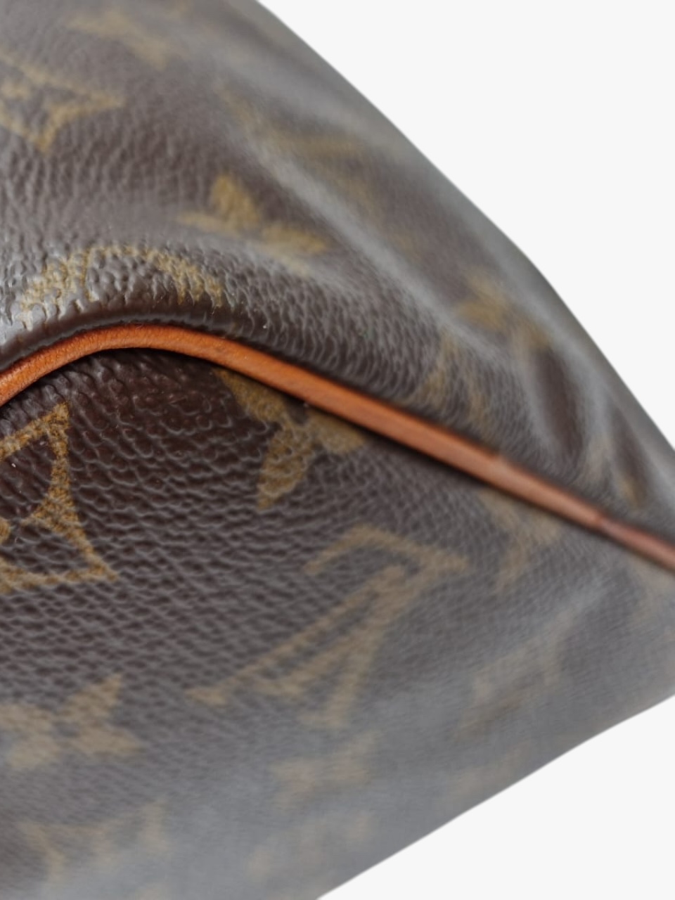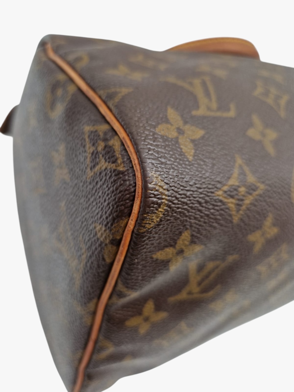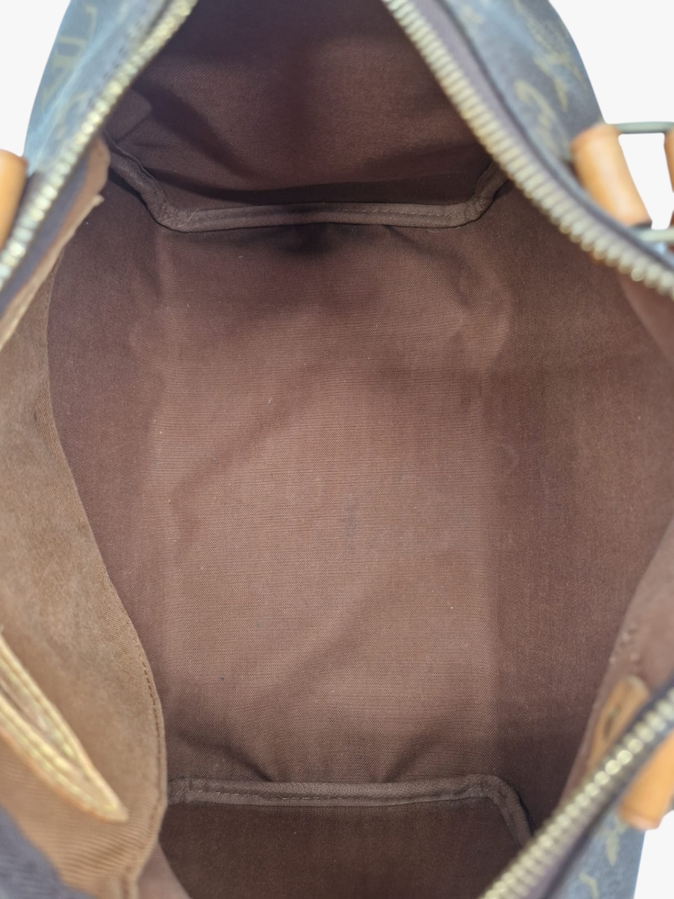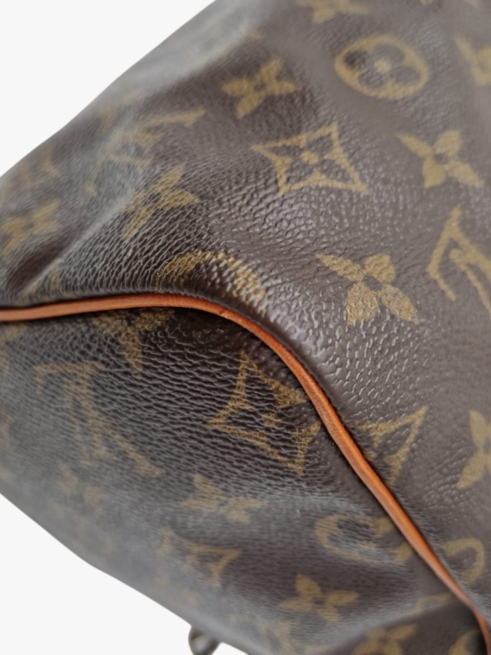 Bauletto Speedy 30 LV vintage, in tela monogram e vacchetta naturale, interno in tessuto marrone, parti metalliche color ottone.