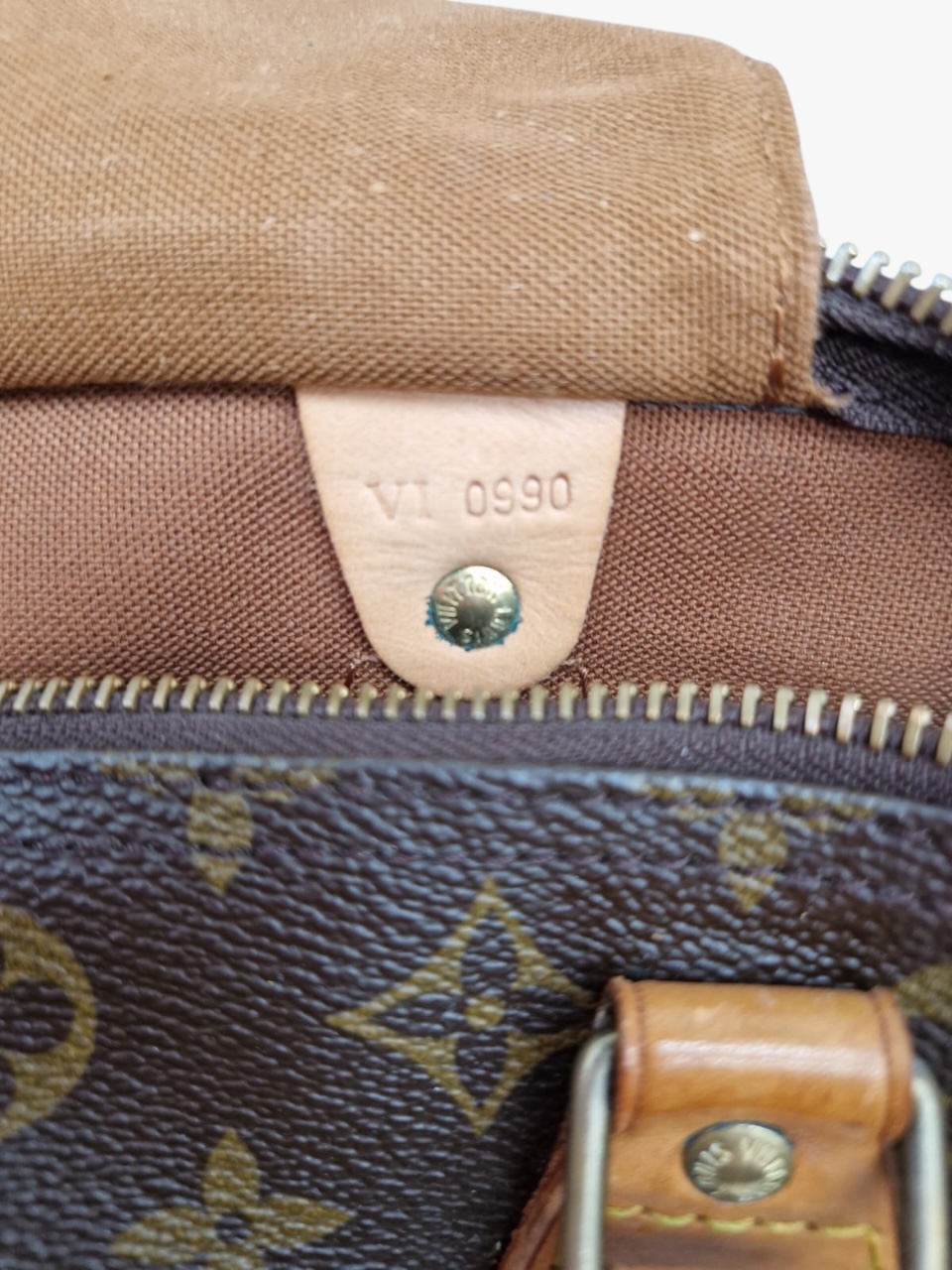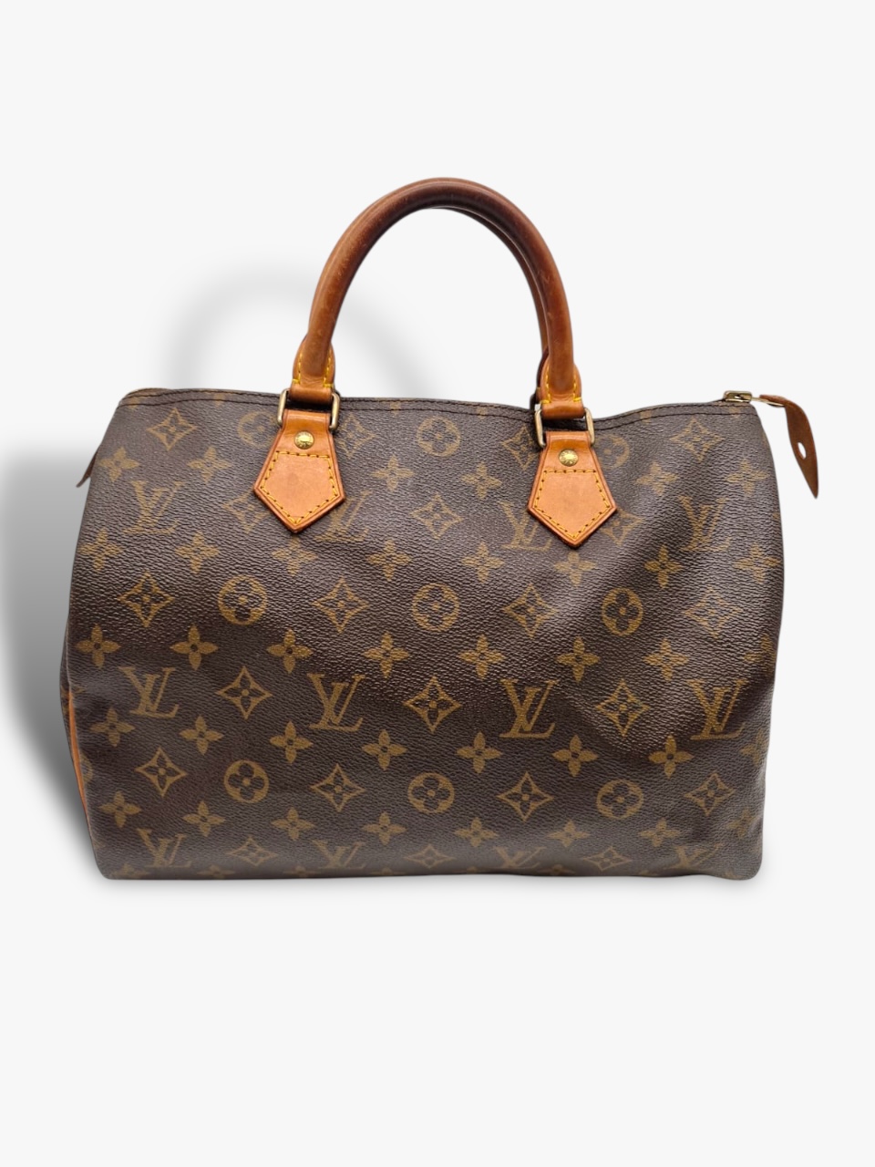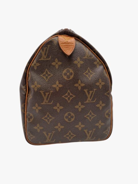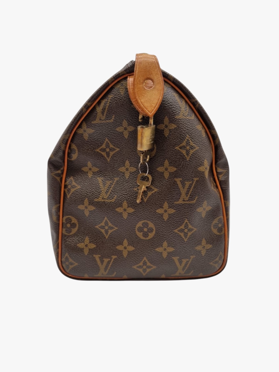 Bauletto Speedy 30 LV vintage, in tela monogram e vacchetta naturale, interno in tessuto marrone, parti metalliche color ottone.