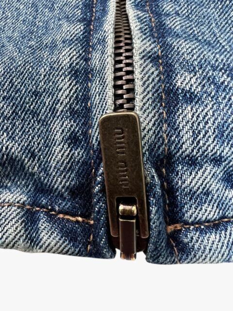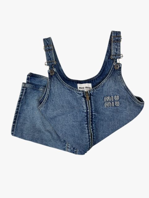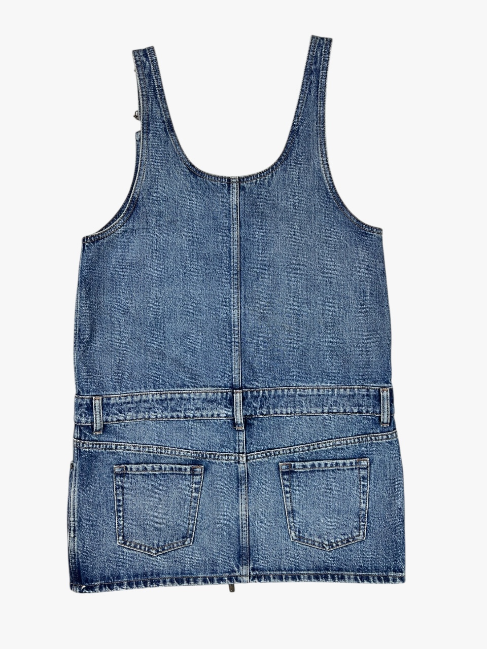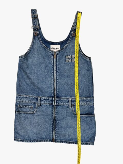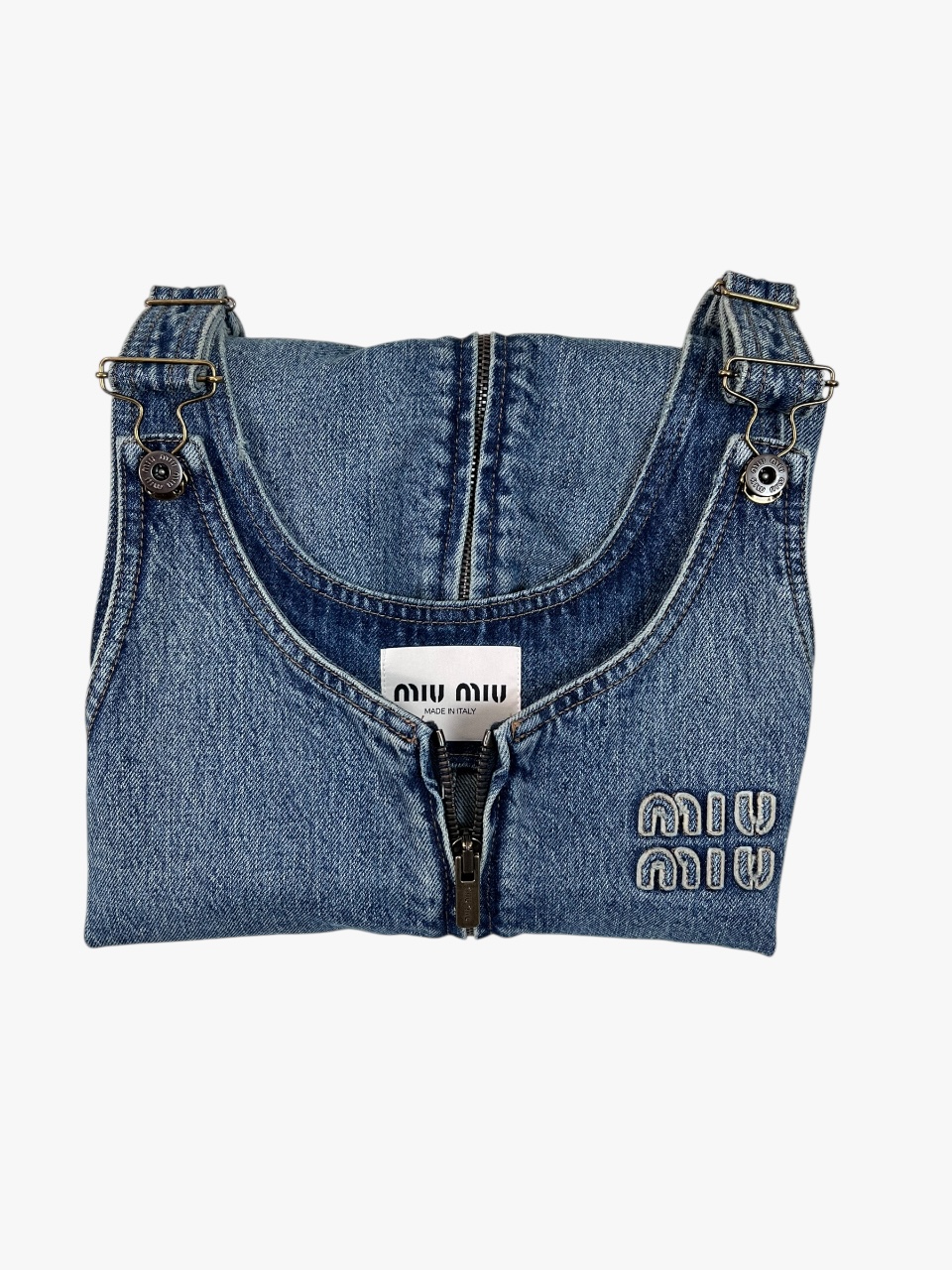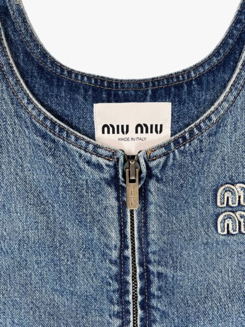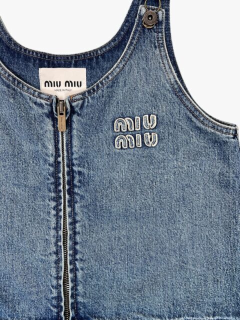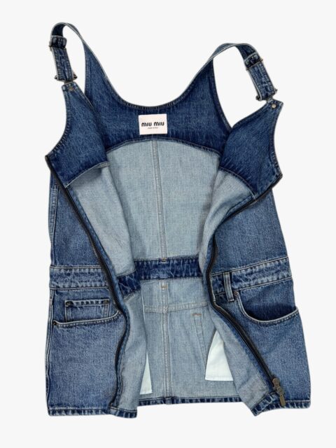 Il denim stone washed ispirato agli anni ’90 si fonde con dettagli a taglio vivo e inserti in popeline pervinca, tipici del linguaggio Miu Miu, dando vita a questo abito con zip dal twist sperimentale e vintage. Misure in cm: Lunghezza totale 80.5, Petto 43.5. Si presenta in buone condizioni, senza alcun tipo di corredo.