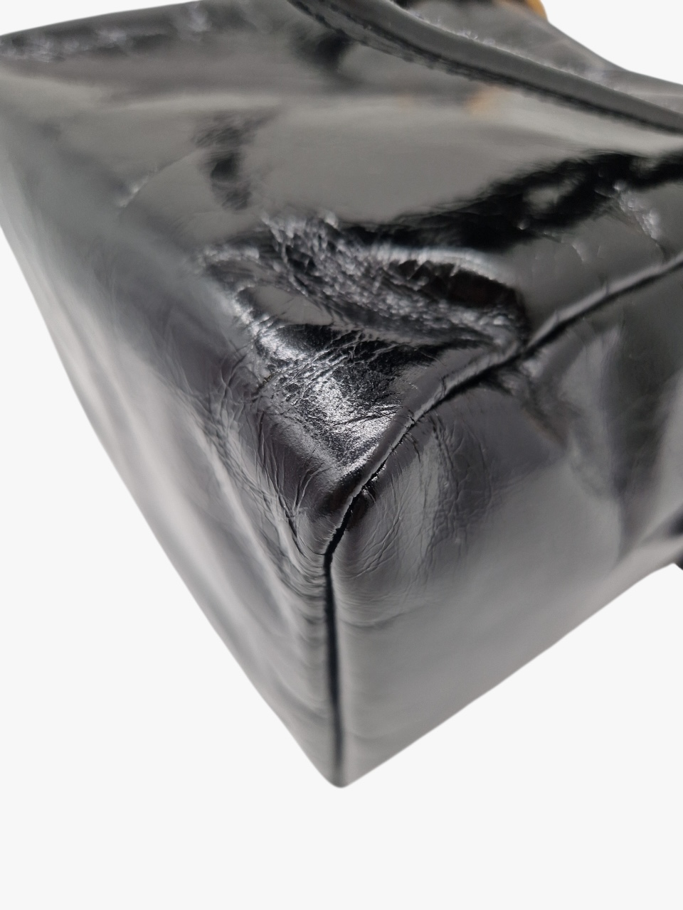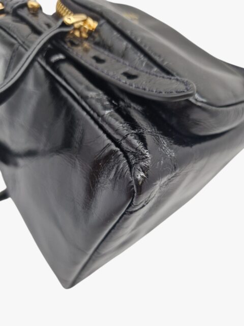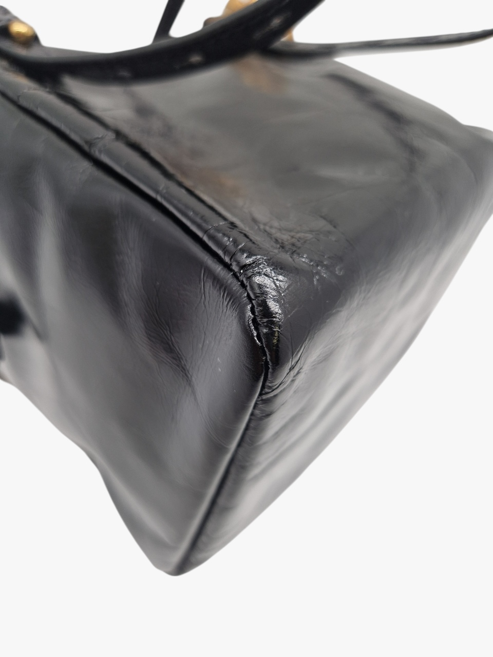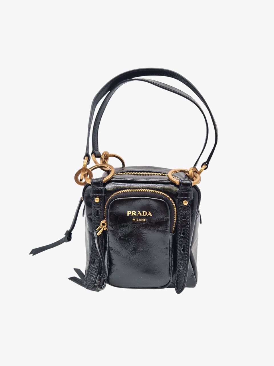 La borsa a bauletto è rinnovata nella geometria con una nuova forma cubica, realizzata in pelle morbida dal finish vintage. Il fascino retrò è enfatizzato dalle finiture in metallo anticato e dalla tasca con zip ispirata agli archivi. Manici in pelle, luce 25 cm. Tasca frontale con zip Finiture in metallo. Logo stampato a caldo su tasca Chiusura zip. Pelle di vitello con Interno in nylon siglato. Altezza: 14cm Larghezza: 14.5cm Lunghezza: 13.5cm. Anno 08/2025. Dotato di Dustbag e chip elettronico, si presenta in buone condizioni.