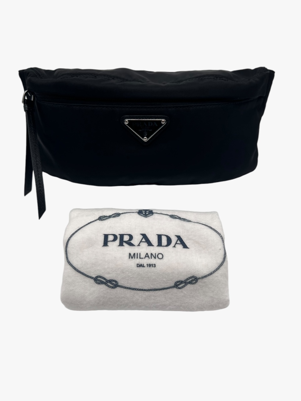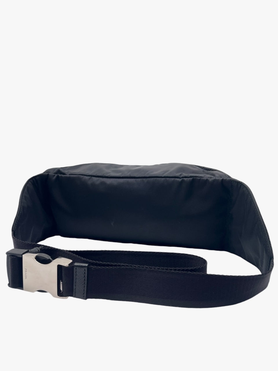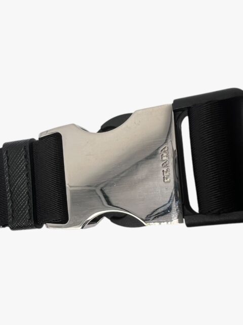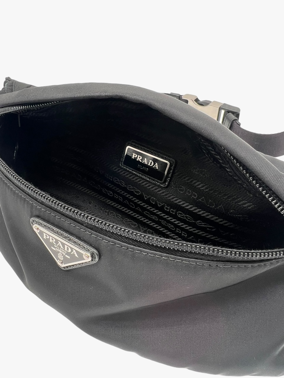Influenze provenienti dallo streetwear definiscono questo marsupio presentato nell’innovativo Re-Nylon, un tessuto rigenerabile all’infinito, ottenuto dal riciclo delle materie plastiche raccolte negli oceani. Il logo triangolo in metallo smaltato enfatizza la parte frontale. Cintura regolabile in nastro con chiusura con sistema a scatto in metallo. Finiture in metallo Logo su triangolo in metallo smaltato su davanti Chiusura con zip Interno in Re-Nylon.